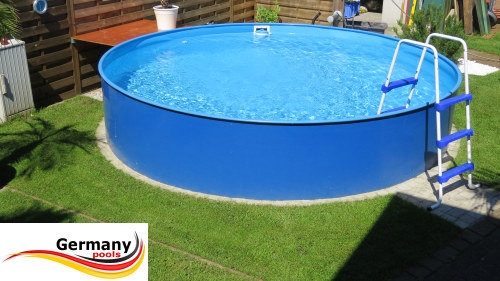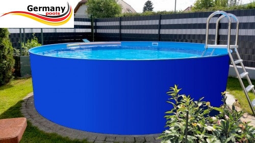 0,8 mm stark. Schnelle Montage des Stahlmantels durch Verbinden der beiden Enden mit einem hochwertigen Alu-Steckprofil. Die Stahlwand ist mit einer gut abziehbaren Schutzfolie gegen Kratzer während Transport und Montage geschützt. Fertig ausgestanzt für Skimmer + Düse. Dank der Modulbauweise bei unseren Germany-Pools ist ein Auf- oder Umrüsten Ihres Stahlmantels bzw. Pools jederzeit möglich (Größe, Form etc.). Stabiler hochwertiger Stahl (kein billig gewelltes Blech, sondern Qualität Made in Germany), für einen langfristigen Badespaß.
