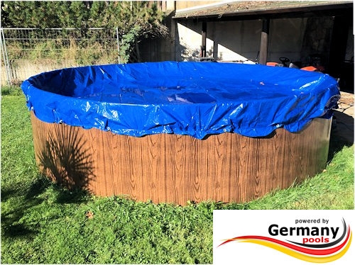 Die Abdeckplane verhindert das Verschmutzen des Poolwassers.