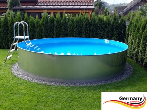 Modell = "German-Dream-Edition"Mantelfarbe = "Edelstahl"Edelstahlbecken Set inkl. Innovativer Handlauf und Bodenschiene, Edelstahlmantel, Poolfolie, Steckprofil, Einbauskimmer und Einlaufdüse uvm.